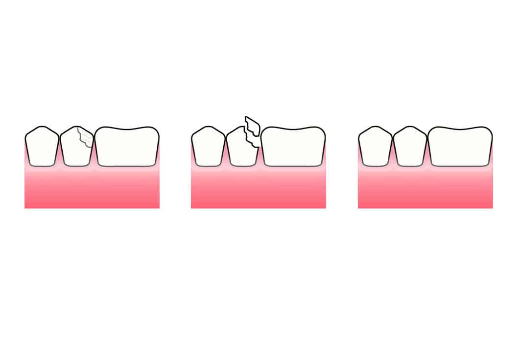 Om det har oppstått sprekk eller fraktur i tannen er det viktig å få behandling raskt for å forhindre videre utvikling av en sprekk eller fraktur. Behandlingen innebærer å forsterke tannen slik at sprekken ikke utvikler seg. Dersom en del av tannen har frakturert, vil den kunne gjenoppbygges med et tannfarget fyllingsmateriale eller en krone. Ved en større fraktur og skade vil ikke tannen kunne reddes og vil i disse tilfeller måtte fjernes ved en tanntrekking.